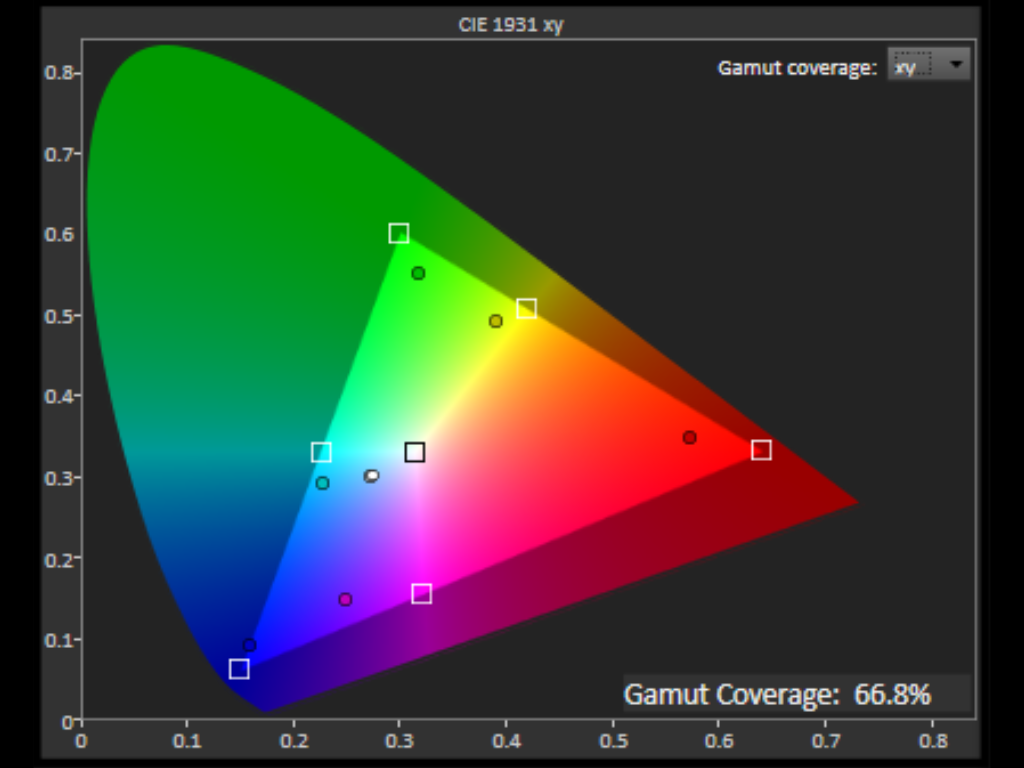 Rec.709カバー率 | ![]() 66.8% | ![]() 64.8% |
